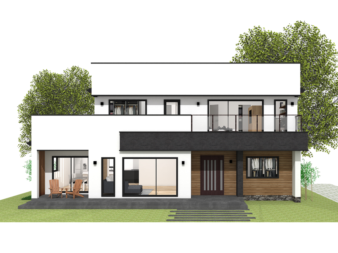 블랙 & 화이트 느낌으로 모던함을 더하고 나무로 포인트를 준 모던 스타일 주택