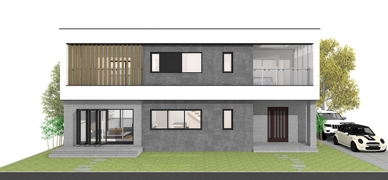 단순한 매스에 세라믹사이딩과 현무암을 사용한 모던주택