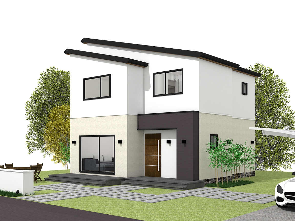 왼쪽 경사지붕의 사선이 강조된 단독주택